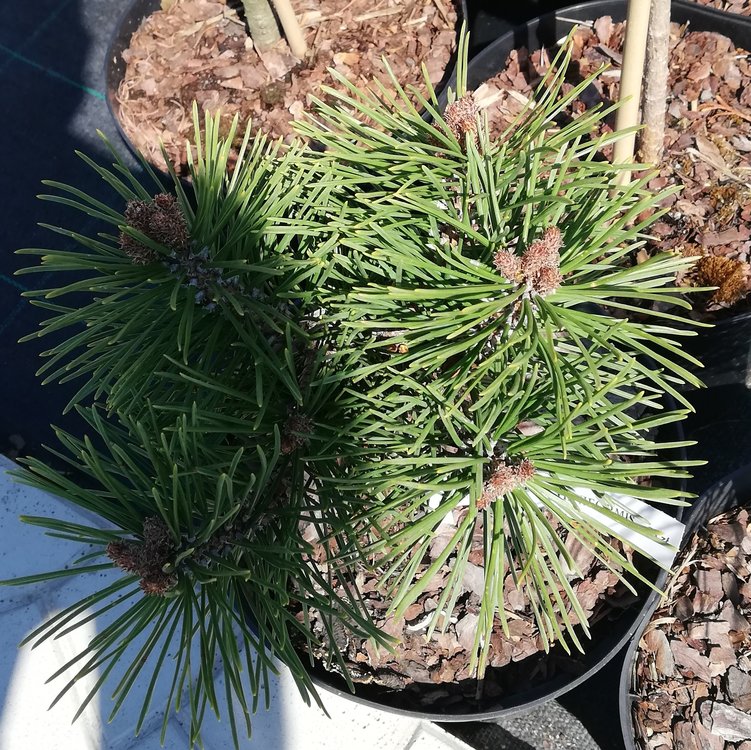 En dvärgform av tall med halvklotform, växer till dimensioner av 45-70 × 70 cm; nålarna är 4 cm långa, gröna, ibland grå i färgen.