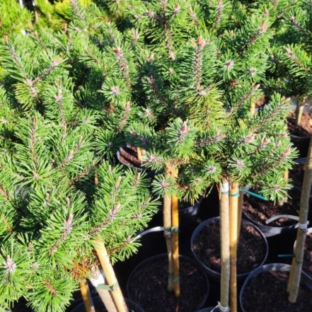 En typ av 5-nålad tall som växer smalt till en höjd av cirka 10 m i vårt land, i sitt hemland (södra Jugoslavien, Albanien och Grekland) blir den dubbelt så hög. Den växer snabbt, 25-30 cm per år, yngre individer långsammare. Barren är styva, mörkgröna med en silvergrå rand underifrån, det övergripande färgintrycket är ljusgrönt till blågrönt. Den tål frost ner till -34 °C.