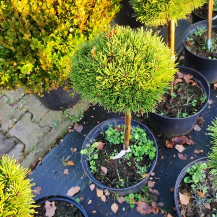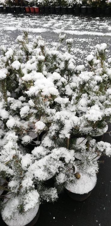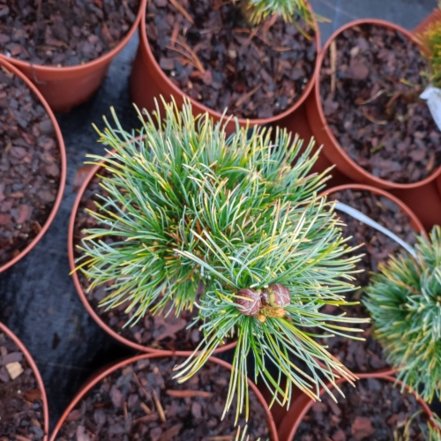 En tall som blir 6 meter hög och 3 meter bred. Efter 10 år har den en maximal höjd på 1,5 m. En konformad art med kortare, blåsilverfärgade nålar. Dessa växer i buntar om fem. Nålarnas färg är mycket mer intensivt blåaktig än hos andra sorter av denna art. Kvistarna är lätt vridna, vilket ger växten utseendet av en äldre individ, trots att växten är ung. Frostbeständigheten är upp till -23,3